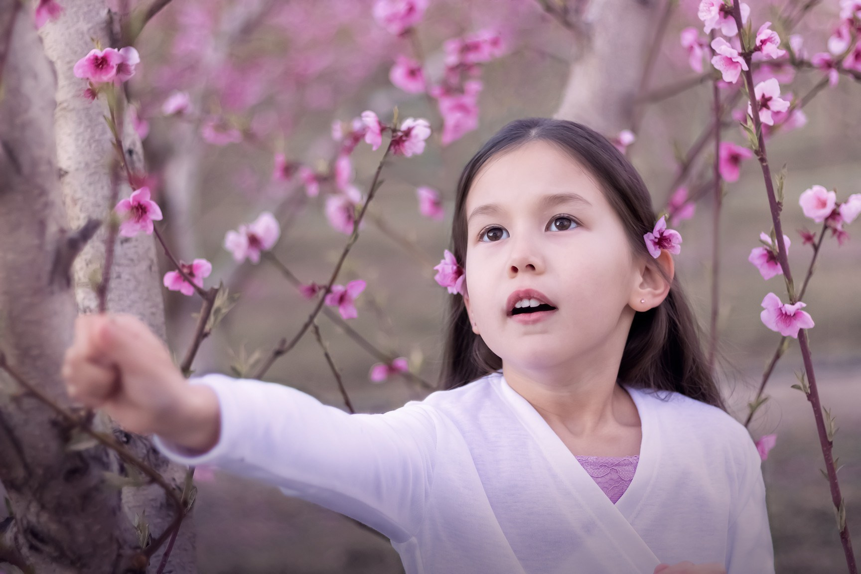 Shooting photo dans les cerisiers fleuris. Photographe et retoucheuse des images des produits à Avignon en France